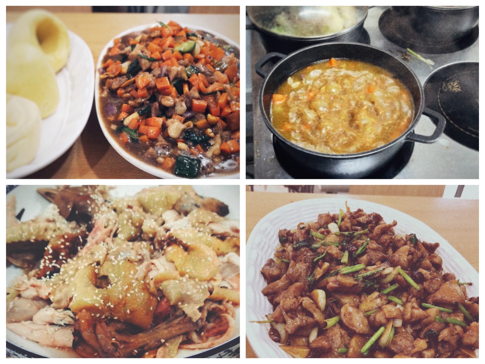 班长宣布活动开始。首先邀请了新同学自我介绍,在大家的掌声中徐耀勋同学完成了自我介绍。接着,主持人向大家介绍了本次参赛的四个队伍以及他们即将呈现的菜品:姐姐的味道之香菜炒鸡丁、咖喱牛牛牛牛腩、川蜀风味宫保鸡丁奢享涪陵榨菜配网红窝窝头、盐焗香鸡,这些听起来就很香的菜名惹得群众评委们连连鼓掌,垂涎三尺。参赛队伍认领了自己的食材便气势汹汹地前往后厨开始紧张地烹饪。