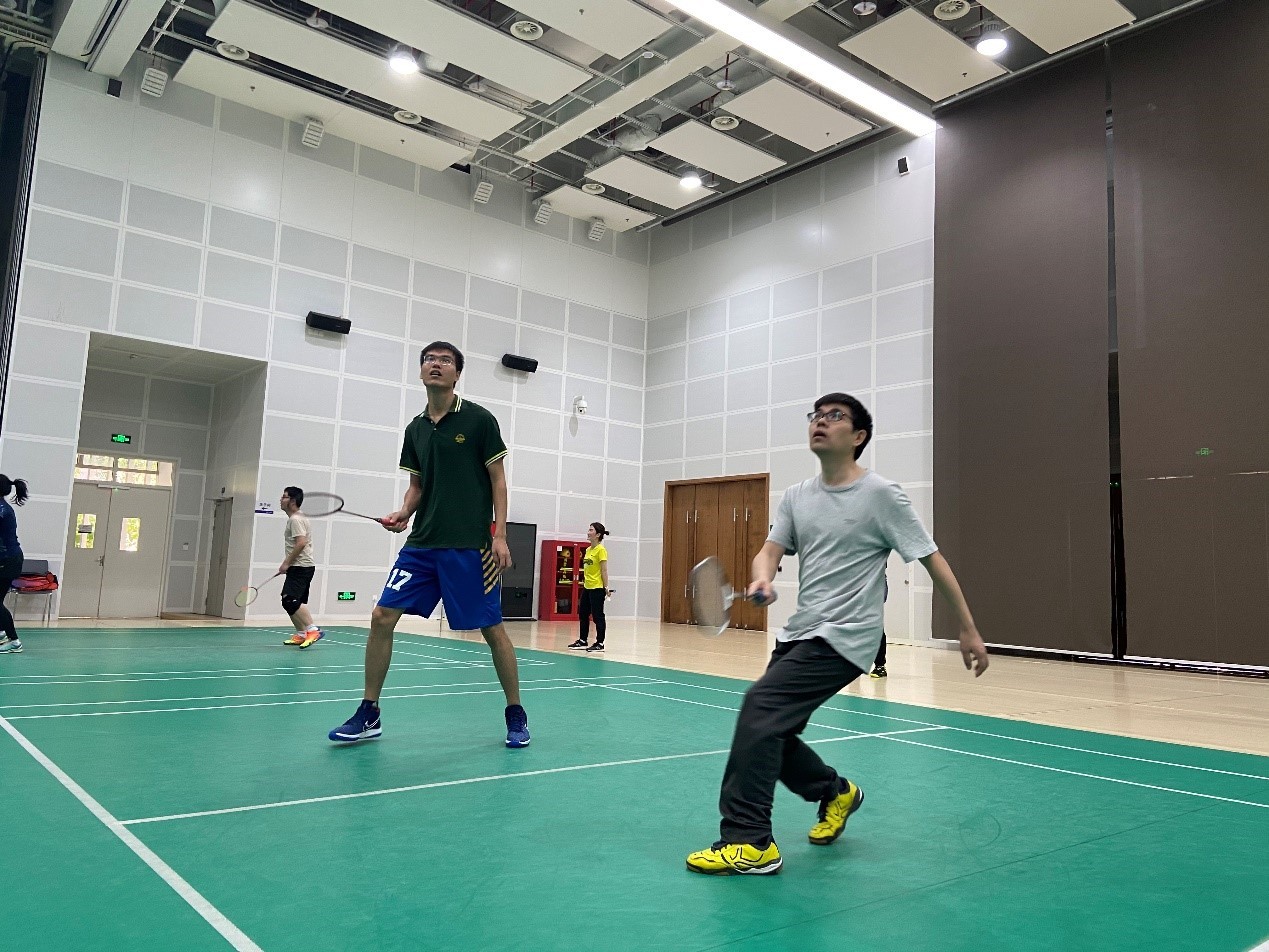 为增加比赛的趣味性和参与度,本次比赛分为团体赛和个人赛。团体赛全员参与,分为2支队伍,设有三组男双、两组混双比赛项目,采取团体五场三胜制。比赛现场气氛热烈,由王轩教授带领的教工一队和徐睿峰教授带领的教工二队在排兵布阵后,展开了激烈的角逐。其中第一组男双为“资深教师赛”,一队王晓龙、丁宇新对阵二队卢光明、徐睿峰;第二组男双为“青年教师赛”,一队苏静勇、夏文对阵二队花忠云、陈芳林;男双比赛往往是羽毛球比赛中节奏最快的比赛,尤其是“资深教师赛”,几位参赛教师均有多年的羽毛球功底,你来我往,斗智斗勇,精彩纷呈,最后三组男双比赛皆为一队胜出。