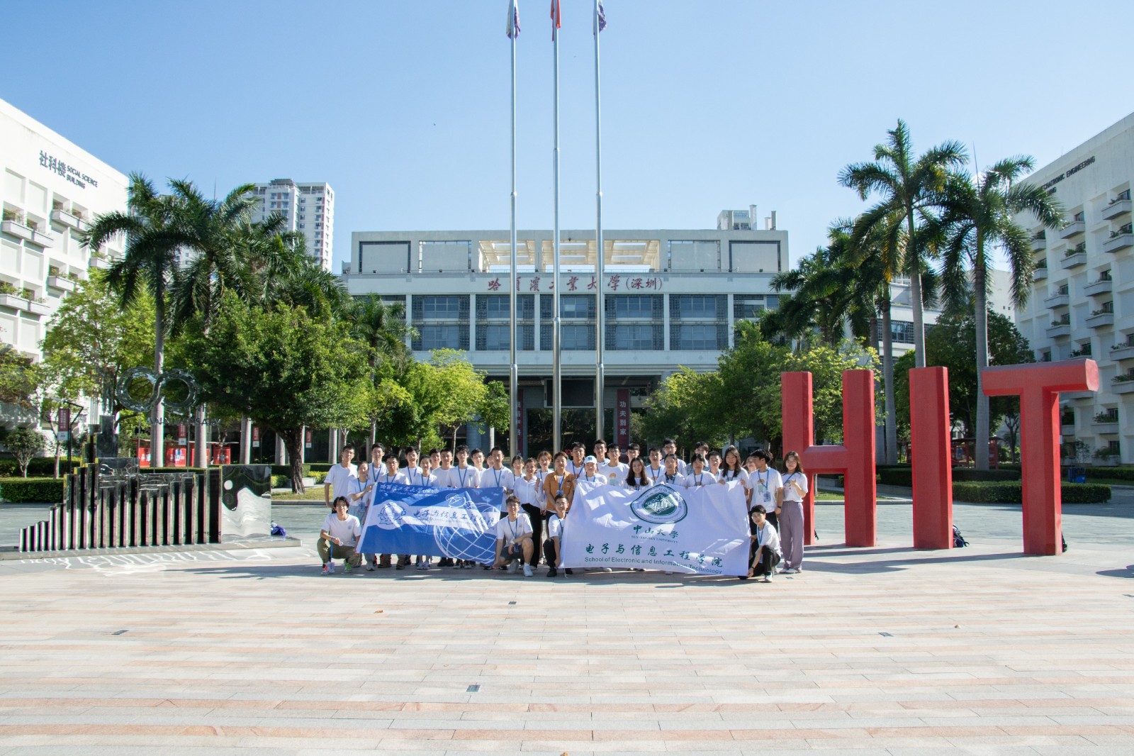 最后,带领中山大学来访师生一同前往大学城图书馆,近距离感受大学城内浓厚的学习氛围,以及一应俱全、丰富多样的馆内设施。参观完后,一行人在HITSZ广场进行了合影留念,为这次的来访活动留下最美丽的剪影,也为此次活动画上一个圆满的句号。