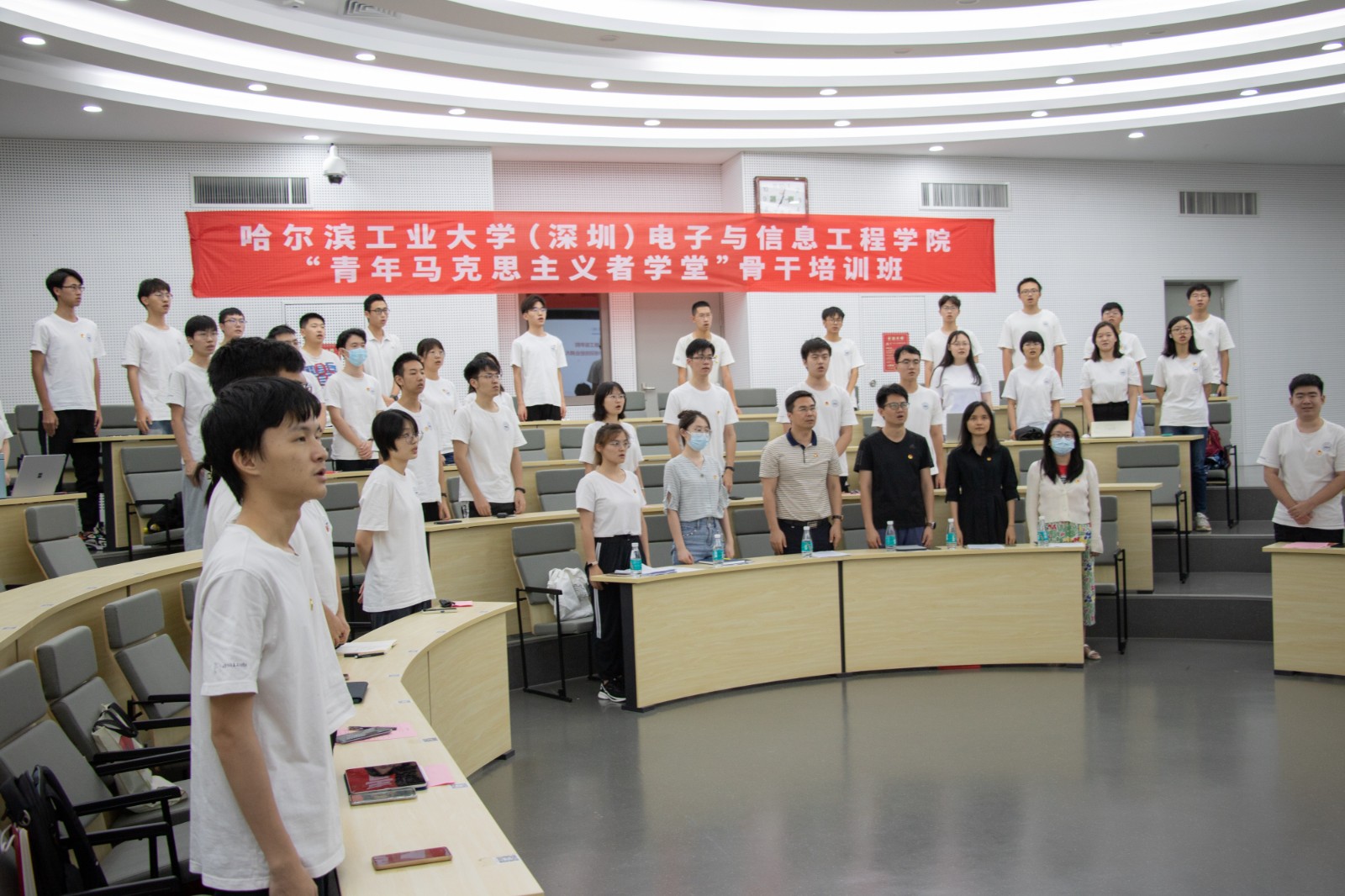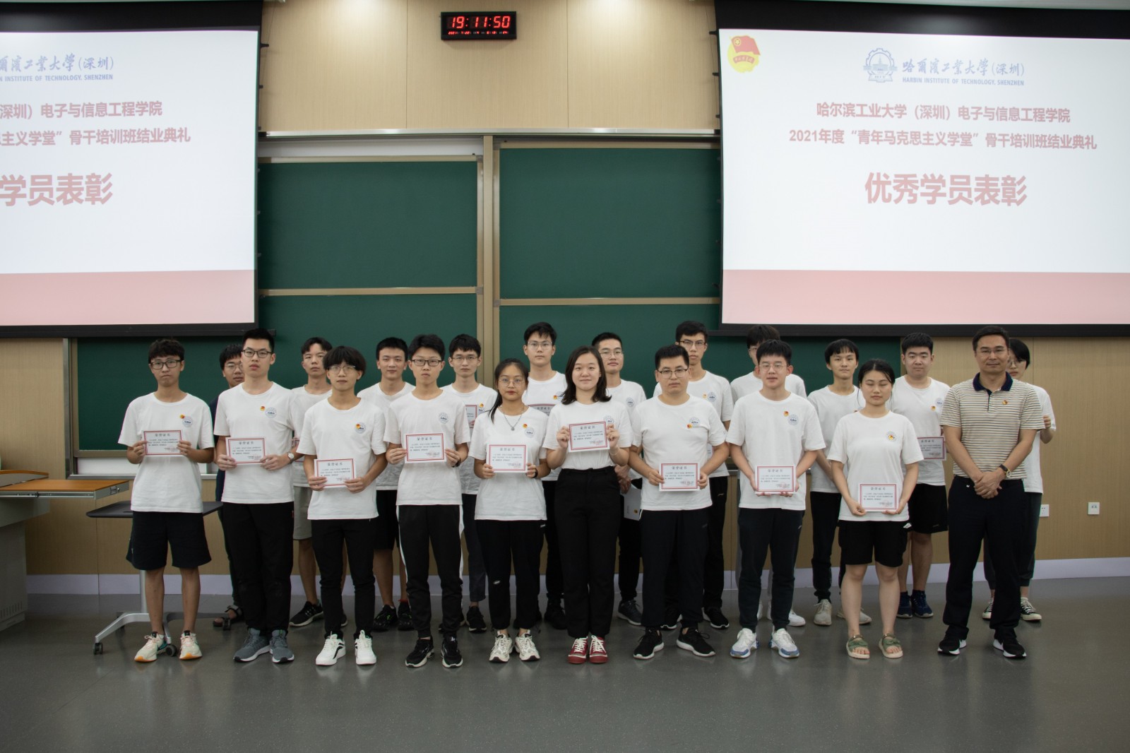 【哈工大(深圳)电子与信息工程学院宣】7月22日晚七时,电子与信息工程学院举办了2021年度“青年马克思主义学堂”骨干培训班结业典礼暨最后一课。电子与信息工程学院党委书记田佳峻、学工办主任梁羡飞、专职组织员刘昊、辅导员熊晶玲、应梦娴、李娜与培训班学员们到场参会,电子与信息工程学院学生会主席尹珊至主持会议。