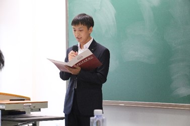 而后,栾欣继续主持进行了第三届研究生会主席团候选人竞选。本次主席团竞选委员会主要由王建明、周楠、王一鸣、苏以洋四位同学组成。四位同学从自我介绍、个人能力、工作展望等方面进行了精彩的自我陈述,并回答了与会学生代表和参会老师提出的各类问题。
