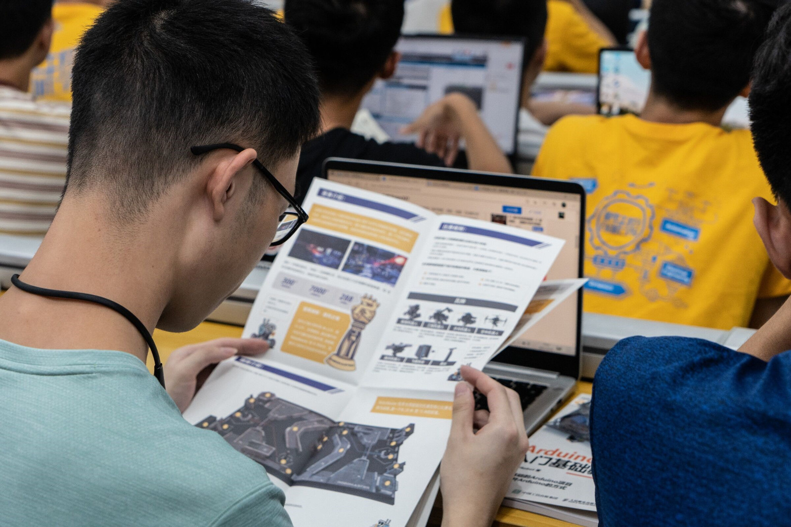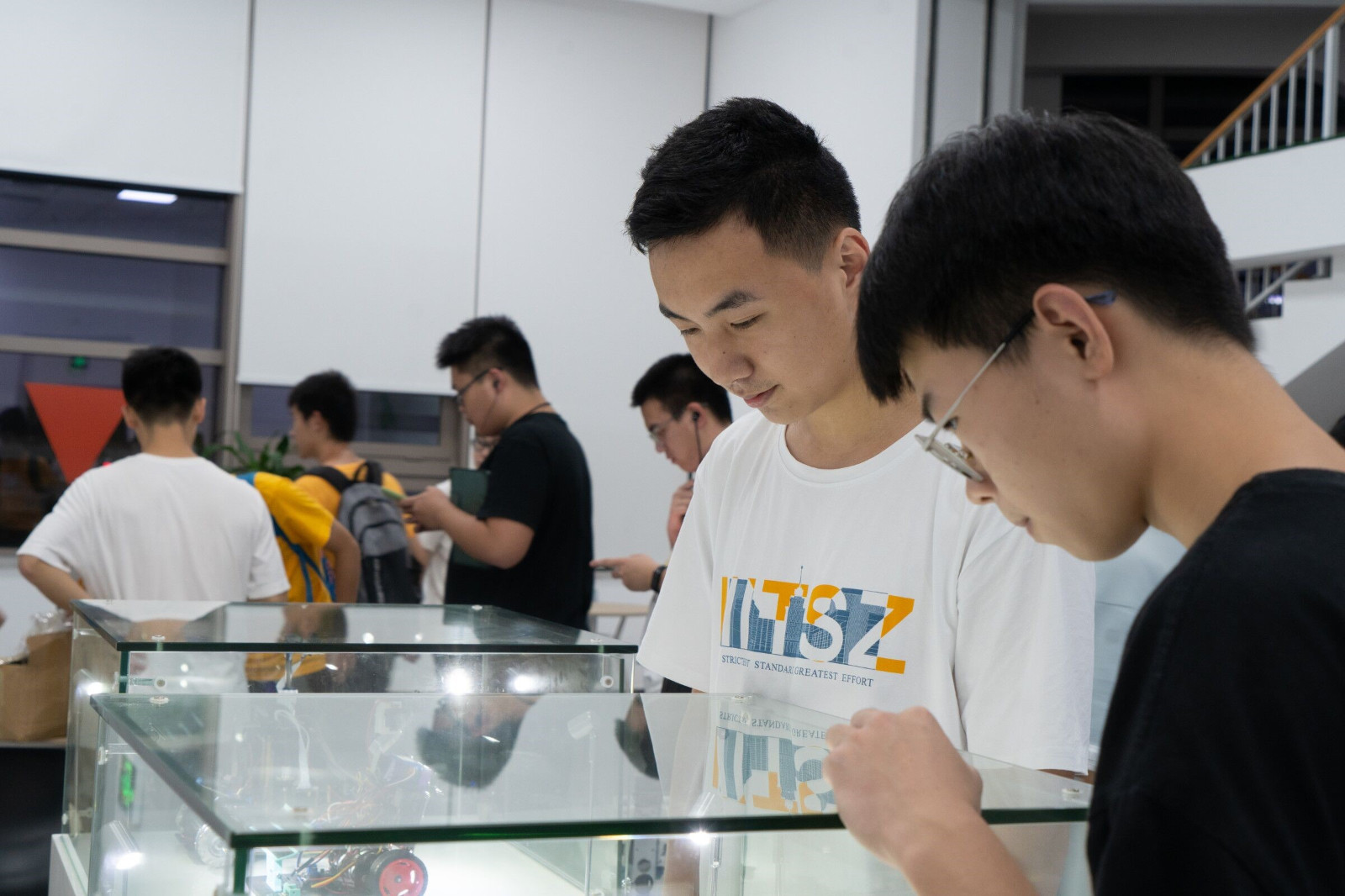 在开营仪式举办地外场,院团委为营员们展示了大一立项及RM和RC机器人队的优秀作品。作品展也吸引了大批同学的驻足。RM和RC机器人战队同学为参赛选手发放了宣传手册,使同学们对战队有所了解,进一步激发大家自我钻研、追求创新的精神。