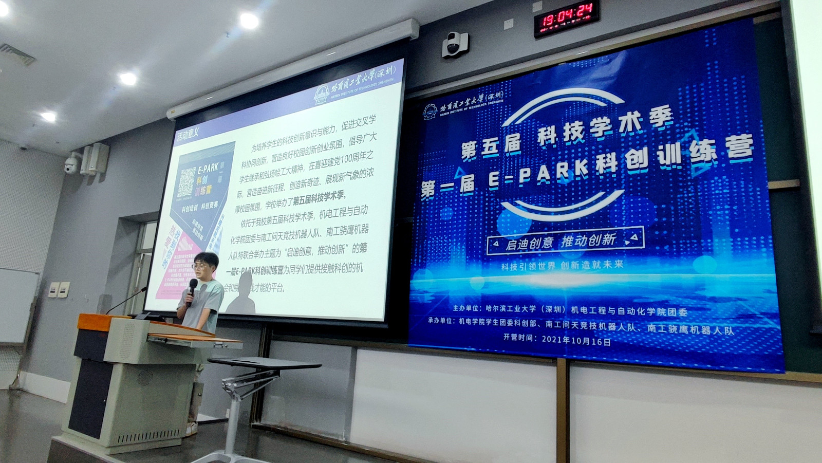 时值我校第五届科技学术季举办之际,为培养我校本科生的科技创新意识,营造良好校园创新氛围,倡导广大学生继承和弘扬哈工大精神,机电工程与自动化学院团委特联手南工问天竞技机器人队、南工骁鹰机器人队举办第一届E-PARK科创训练营。