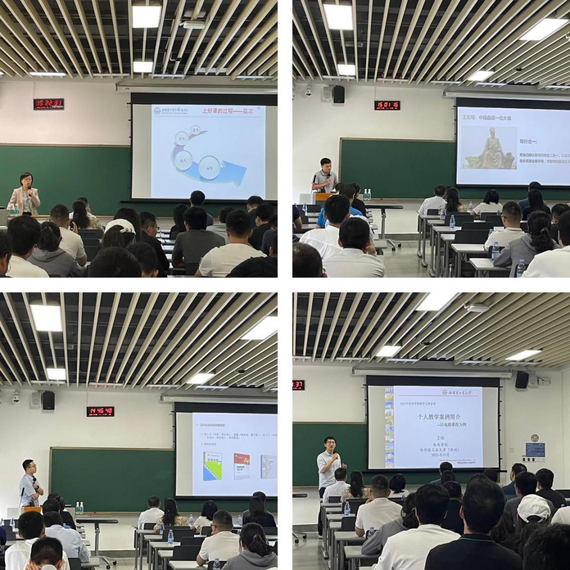 机电工程与自动化学院优秀教师代表王灿、杨晓钧、陈浩耀、张颖依次为学院全体教师进行教学经验分享。各位教师结合个人的实际教学案例,从教学前期准备、教学实施过程、教学内容创新等方面归纳出各具特色的教学经验,总结出别具一格的教学方法,为全院教师带来了精彩的分享。