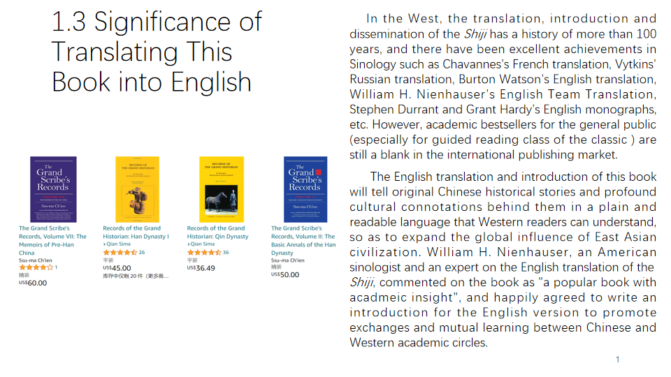 与会专家一致认为,《史记》是中国文化史上一座巍峨的丰碑,复旦大学陈正宏教授的《时空:<史记>的本纪、表与书》虽然是部普及性的学术著作,却不乏高明而宏通的见解,原作基于讲课增强了文本与读者(听众)的互动性,其外译工作对全世界了解中国历史文化有着不可替代的作用,因此黄红宇副教授及团队此次的国家外译项目意义非凡。黄红宇老师是耶鲁大学文学博士,有长期国外求学任教经历,加上中外强大的团队,非常适合承担本著作的英译工作。译文样章整体准确、流畅,极具可读性,并提供了相应的注释,对原作中尖新俏皮的口语化措辞进行醇厚化处理也恰到好处。