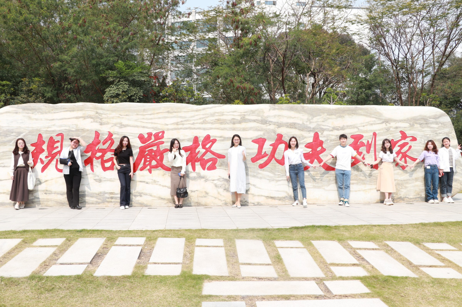 十余位女教职工代表从校区主楼出发,经过实训楼、校训石、信息楼等校园标志性建筑及景点,最后到达大沙河畔,大家欢声笑语,结伴而行,看蓝天白云,闻芳菲花香。
