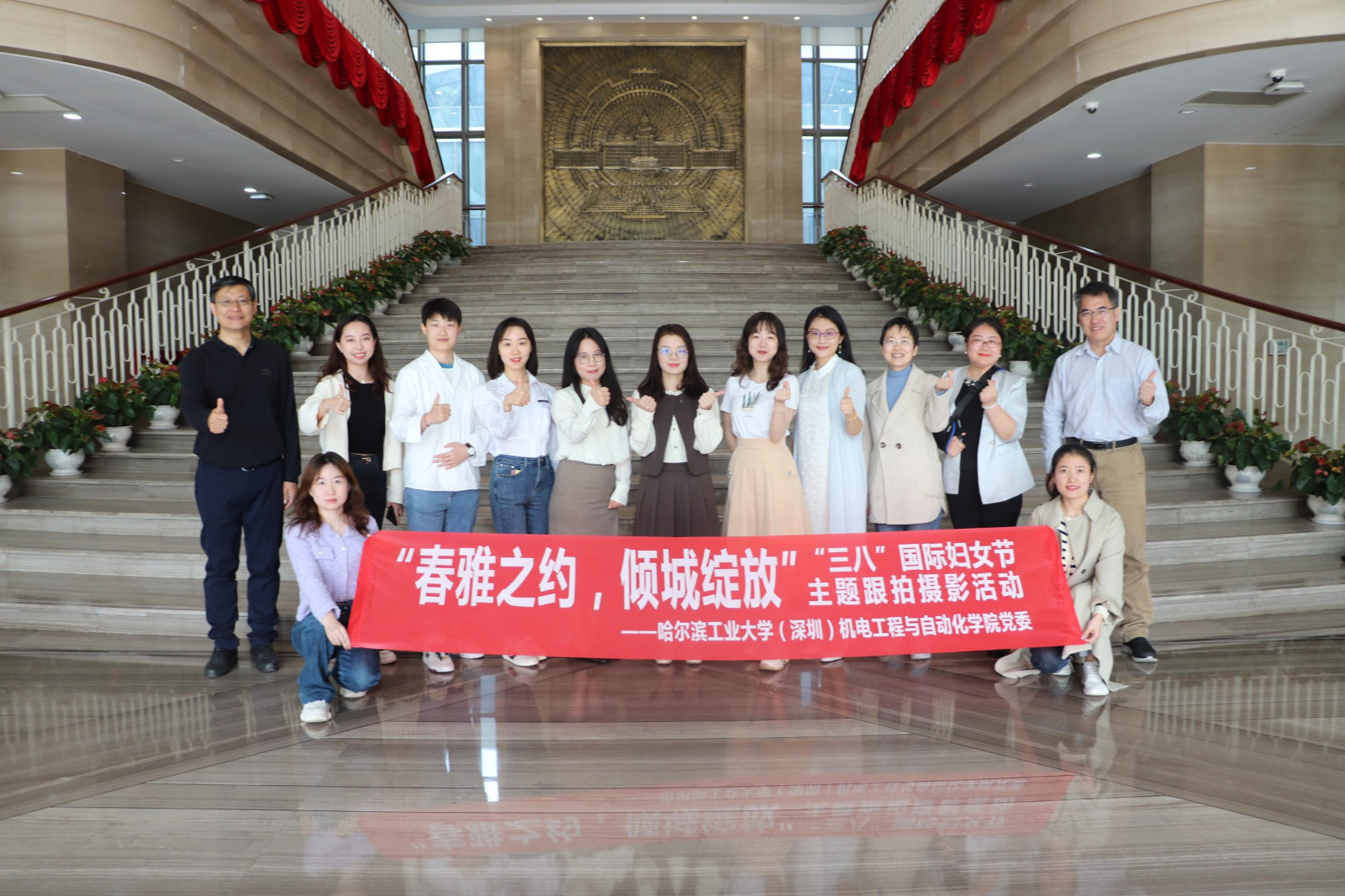 【机电学院党委宣】(田家兴 朱人珺/文 甘佳凯 郑文钊/图)繁花似锦,春意盎然,3月8日上午,为庆祝第113个“三八”国际妇女节,机电工程与自动化学院开展”春雅之约,倾城绽放“主题跟拍摄影活动,向学院全体女教职工致以节日的问候和美好的祝福。学院执行院长李兵、党委书记楼云江与学院女教职工代表出席活动,共赴春光,用相机定格学院中的女性风采与校园里的春日美景。