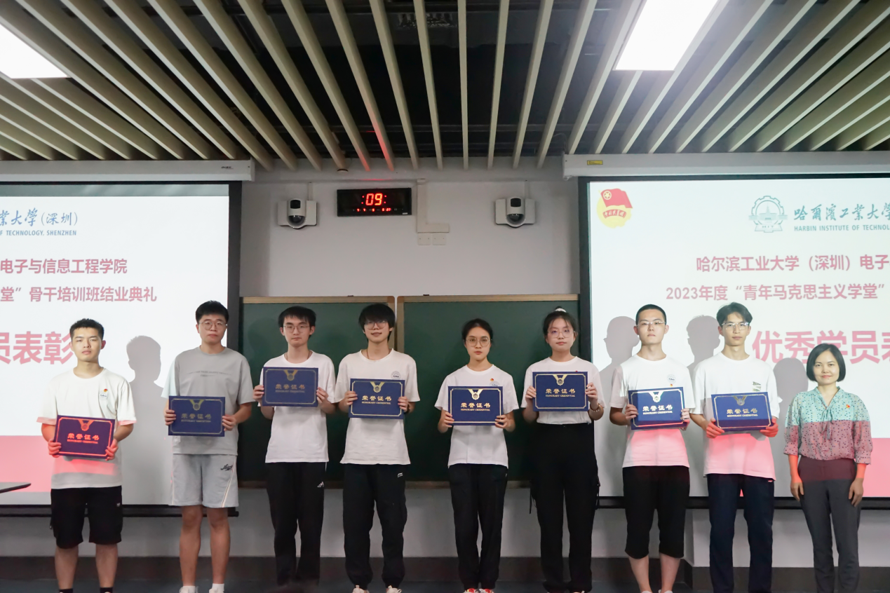 【电子与信息工程学院宣】(图/姬凯、文/李珂)7月7日晚七时,电子与信息工程学院于T5 204室举办了2023年度“青年马克思主义学堂”骨干培训班结业典礼。本次结业典礼由学生团委副书记李珂主持,电子与信息工程学院党委副书记黄小琼老师、团委副书记李娜老师、田薇老师、辅导员梁羡飞老师与培训班学员们到场参会。