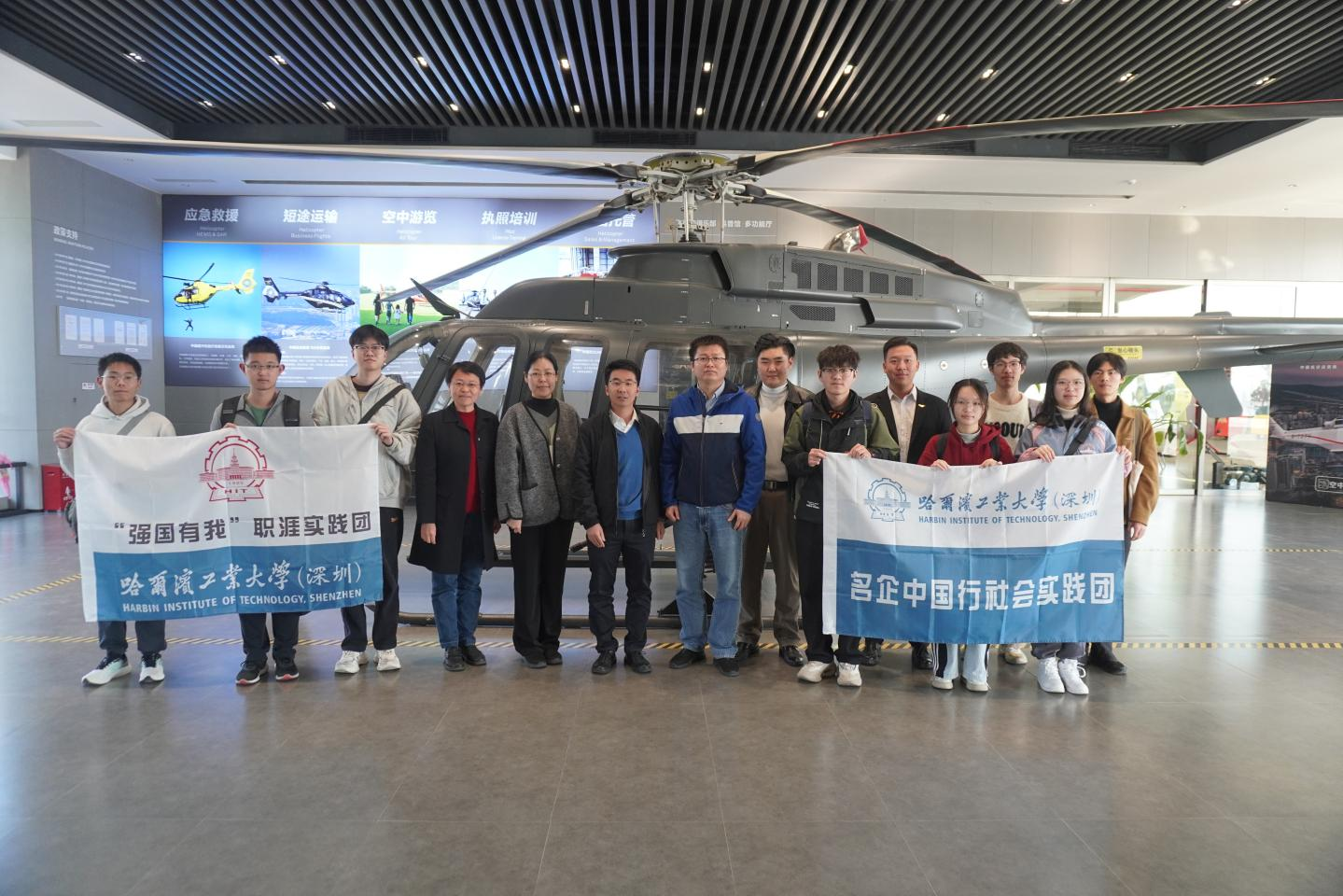 第三站,校区团委书记林坤老师、信息学部党委副书记曹罡老师、计算机学院副院长何道敬老师与实践队共同来到东部通航低空飞行基地,深入了解通用航空产业的发展现状与未来前景。东部通航是中国民航局和深圳市政府认定的低空经济改革试点单位,拥有粤港直升机跨境飞行许可及多项民航资质。公司以构建通航生态系统为目标,业务涵盖应急救援、商务出行、空中游览、飞行培训、直升机销售与维修等。