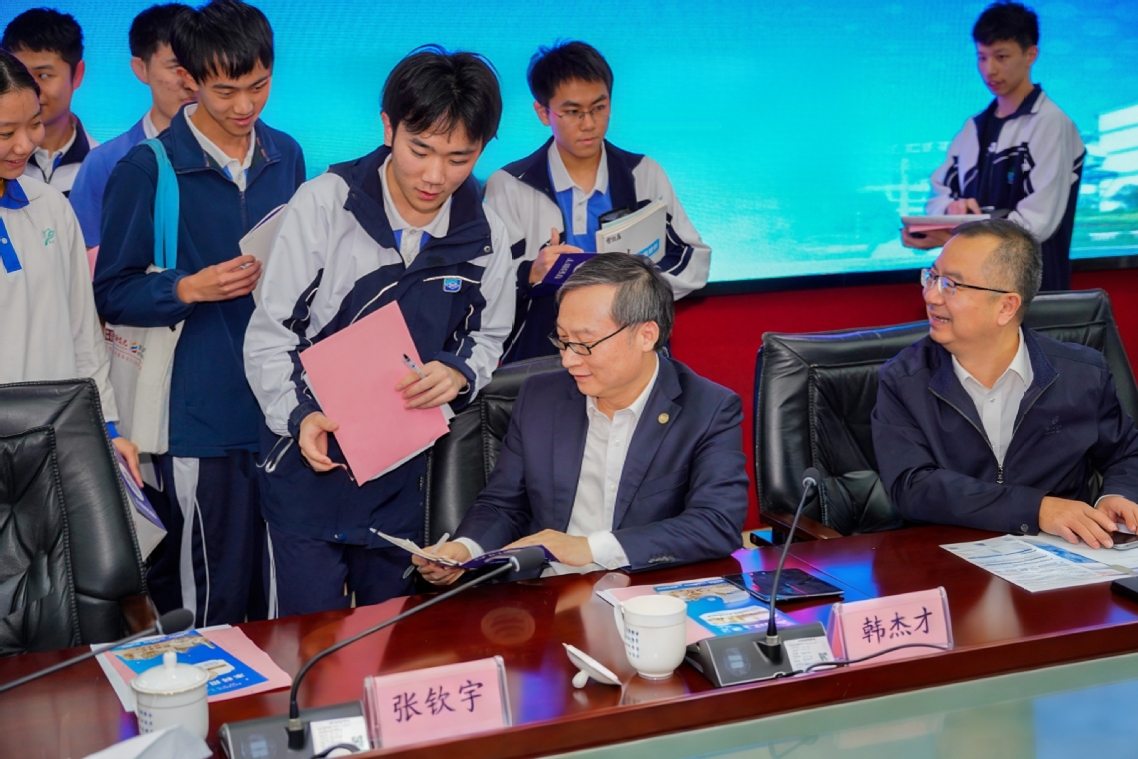 “希望同学们胸怀大格局、拓展大视野、激发大能量,在高三冲刺阶段坚定信心、全力以赴!”“大学是一个广阔平台,将助力大家创造无限可能。”“在哈工大,总有一款培养方案适合你!”……韩杰才与现场青年学子互动交流,勉励学子胸怀“国之大者”,将个人发展与强国建设、民族复兴伟业紧密结合,矢志刻苦学习、追求卓越,在更大的平台努力成长为满足国家需求、实现全面发展的拔尖创新人才,为接续推进中国式现代化建设贡献智慧和力量。
