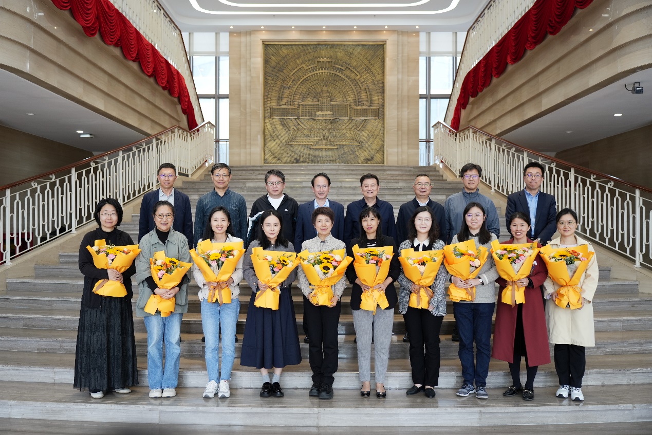 校区领导与女教职工代表合影留念
