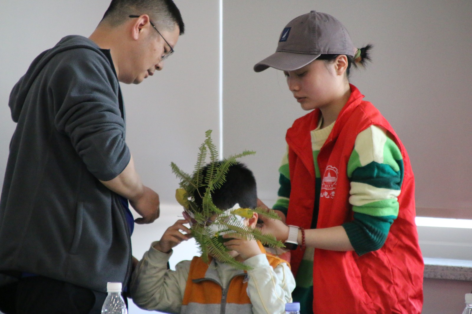 拾捡落叶结束后,家长和小朋友在志愿者的引导下进入手工教室,共同完成落叶面具。在“满天星妈妈”手工老师的指导下,亲子与志愿者协作,利用采集到的秋叶创作独一无二的树叶面具,将秋天戴在脸上,将童话捧在手中。在细致的剪裁与粘贴中,孩子们在家长与志愿者的陪伴下,专注地完成每一个步骤,从色彩搭配到形状组合,都融入了自己的理解与心意。一片片普通的落叶在指尖间被赋予新的生命,变成承载情感的小小作品。