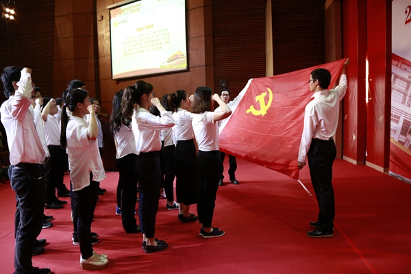 会上,2015计算机技术专业硕士宋国良等26名新党员庄严宣誓:我志愿加入中国共产党,拥护党的纲领,遵守党的章程,履行党员义务,执行党的决定,严守党的纪律,保守党的秘密,对党忠诚,积极工作,为共产主义奋斗终身,随时准备为党和人民牺牲一切,永不叛党。