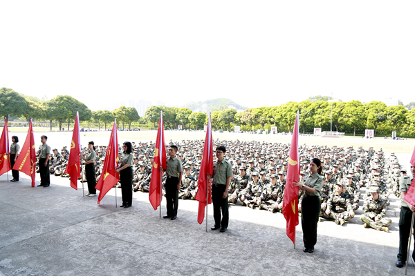 军训团政委、校区筹建办党委副书记张敏向军训团授团旗