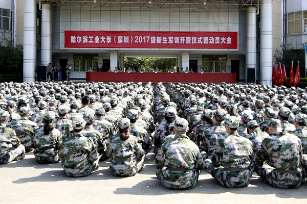 哈工大(深圳)宣(向碧霞/文、图)8月21日,校区2017级本科新生军训开营仪式暨动员大会在深圳国防教育训练基地盛大举行。哈工大校长助理、校区筹建办常务副主任甄良作动员报告,校区筹建办常务副主任姚英学、党委副书记张敏及筹建办成员韩喜双,国防教育训练基地主任崔照坤、教官办公室主任莫际民出席大会,562名2017级本科新生、新生辅导员参加大会。校区学生发展处(部)处长俞晓国主持大会。