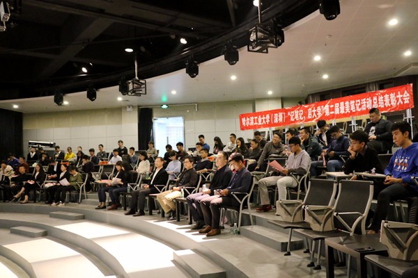 哈工大(深圳)宣(骆芃楚/文 石冰若/图)12月13日,“记笔记,启大学”第二届“最美笔记”活动总结表彰大会在校区机器人剧场举行。学生发展处(部)处长俞晓国为获奖学生颁奖,学生发展处(部)相关工作人员、本科生辅导员、研究生辅导员及获奖学生代表参加了表彰大会。