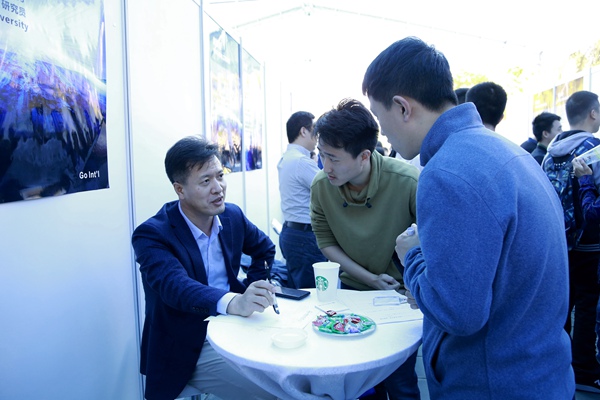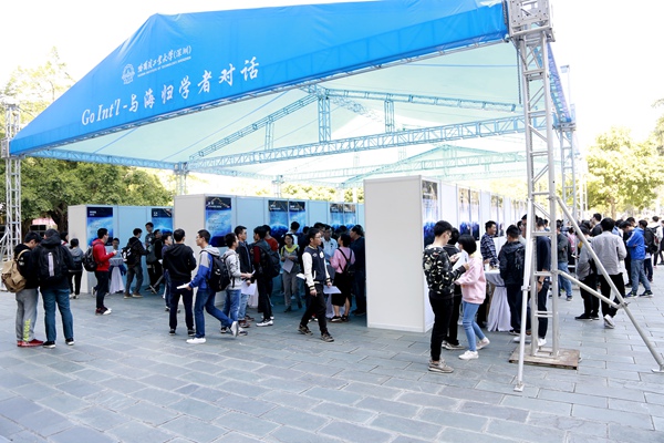 哈工大(深圳)宣(薛佳祥/文 常溪/图)12月29日,由国际合作处主办的 “Go Int'l ----与海归学者对话”活动在A栋广场成功举办,该活动邀请了校区60余位具有海外留学、科研或工作经历的教授、学者为有出国意愿的学生提供留学咨询,300余名学生参与了活动。