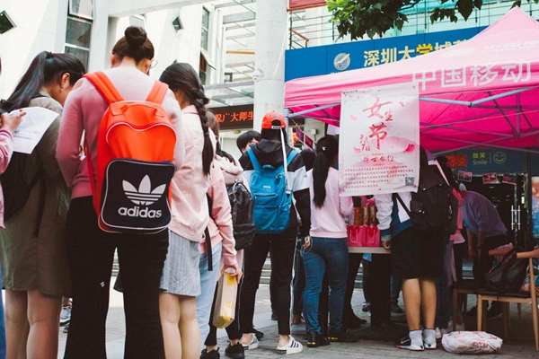 活动当天,写满校区师生祝福的明信片在食堂门口展出,一张张满载期盼话语的明信片在晴空中闪耀,犹如粉色暖心的气泡在周围荡漾;凡是身着粉色元素服装的女生,都可以参加当天举办的幸运色抽奖游戏,诚意满满、琳琅满目的奖品,为幸运女生送去了惊喜和欢乐;绅士公约也是本次活动的重要组成部分,她会发现,即使晚到课堂也没有关系,教室前排预留了若干空座位;快递太重,也不是事儿,会有热心的他们争先恐后帮你拿东西……而这一份份情谊带来的便利,会贯穿她的学校生活。
