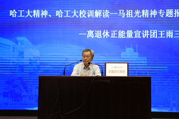 哈工大离退休职工正能量宣讲团王雨三教授作《哈工大精神、哈工大校训解读——马祖光精神》专题报告会