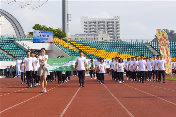 开幕式上,各运动代表队依次迈着整齐的步伐、喊着铿锵有力的口号入场,并通过各具特色的方阵表演展示了校区师生热情活泼、奋发向上的良好精神风貌。