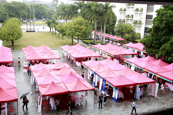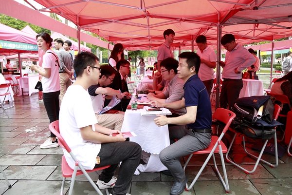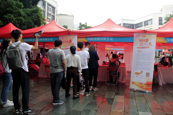 哈工大(深圳)(单明丽/文 温婷、就业协会/图) 4月24日,第十九届国内外知名企业高层次人才招聘会在校区A栋广场成功举办,近百家企业携大量岗位来校招聘,来自校区、深圳大学城及深圳市各高校逾千名学生参加了招聘会。