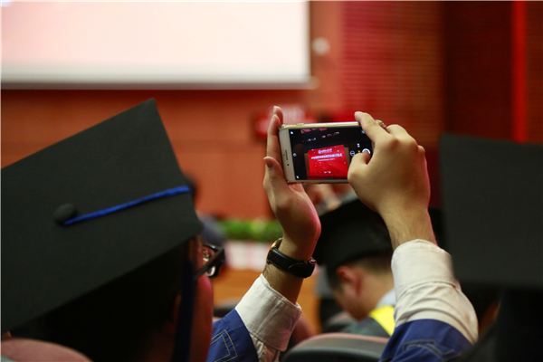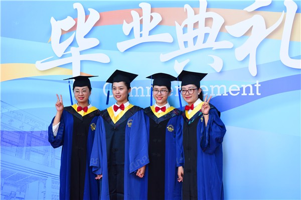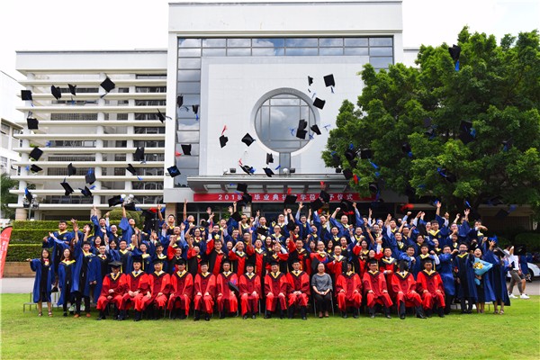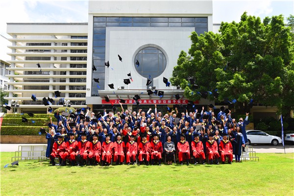 吴德林、甄良、姚英学一同为毕业生颁发学位授予凭证。在毕业生庄严宣誓和奏唱校歌后,毕业典礼圆满落下帷幕。毕业生纷纷在F栋草坪合影留念,校区教师及毕业生家长共同见证了这一重要而又难忘的时刻。