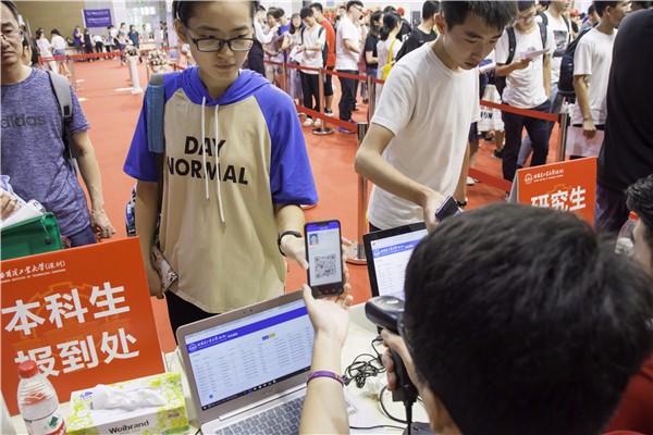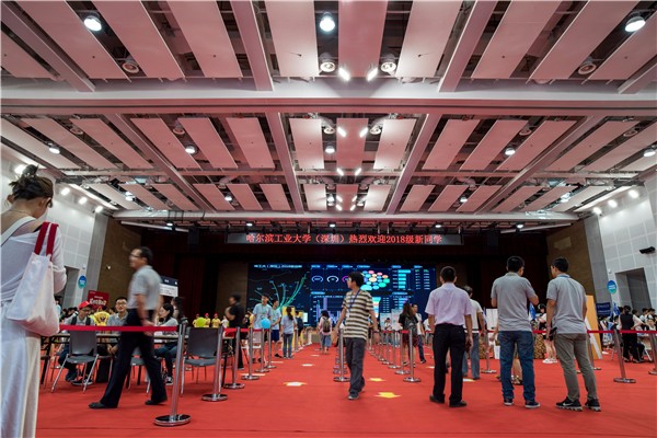 哈工大(深圳)宣(常溪、黄奕芳/文 向碧霞/图)南国工大换新貌,巍峨主楼迎新生。9月15日,校区2018年录取的1722名新生陆续在校区新落成的活动中心报到入学,其中,本科生新生760名、硕士生新生862名、博士生新生100名。校区党委书记吴德林一行走访了迎新现场及新生宿舍,为新生、家长及迎新人员送去关怀和温暖。迎新现场采用了信息化大屏幕等新举措,在办理报到手续间隙,为新生及家长提供有关新生报到最全面的信息。