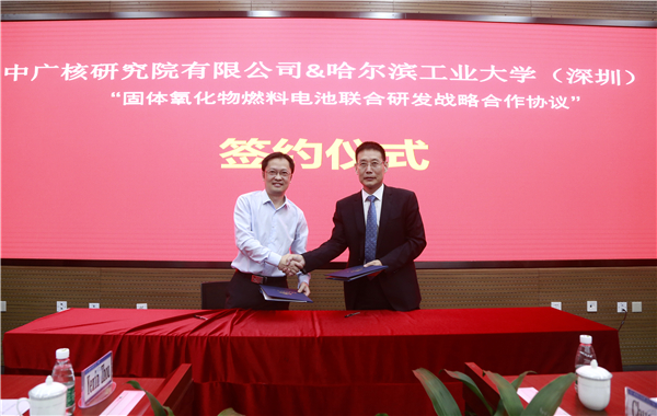 哈工大校长助理、校区常务副校长甄良与中广核研究院有限公司副院长舒睿签订合作协议