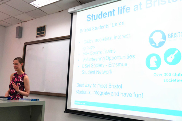 10月22日英国布里斯托大学国际学生项目负责人Samantha Finegold女士介绍布里斯托大学情况、访学项目的专业选择及申请条件