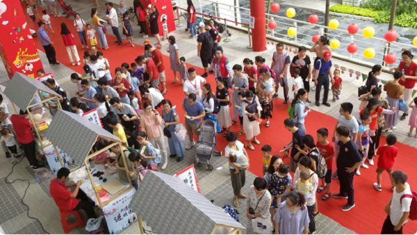 当天,活动分为“非遗”文化小庙会和“空中森林大挑战”两个项目。庙会中,皮影戏、花鸟字、手工涂鸦、捏泥人、中国剪纸、花式棉花糖、糖画、抓金鱼 8 大传统“非遗”项目一字排开,供到场家庭免费体验。“空中森林大挑战”中,小朋友和爸爸妈妈在空中森林里面凭借地图,寻找对应的挑战关卡,完成关卡即可获得神秘的“森林之子”礼物。在活动现场,社区还布置了签名墙和展板,宣传廉政文化和爱国主义教育。