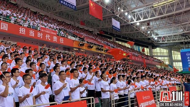 同在9月1日举行开学典礼的还有哈工大(深圳),在深圳大学城体育中心的体育馆内,该校2019级1000名本科生、1008名硕士和218名博士研究生进行了一次"合唱快闪":挥舞着国旗,高歌《歌唱祖国》和《哈工大之歌》。