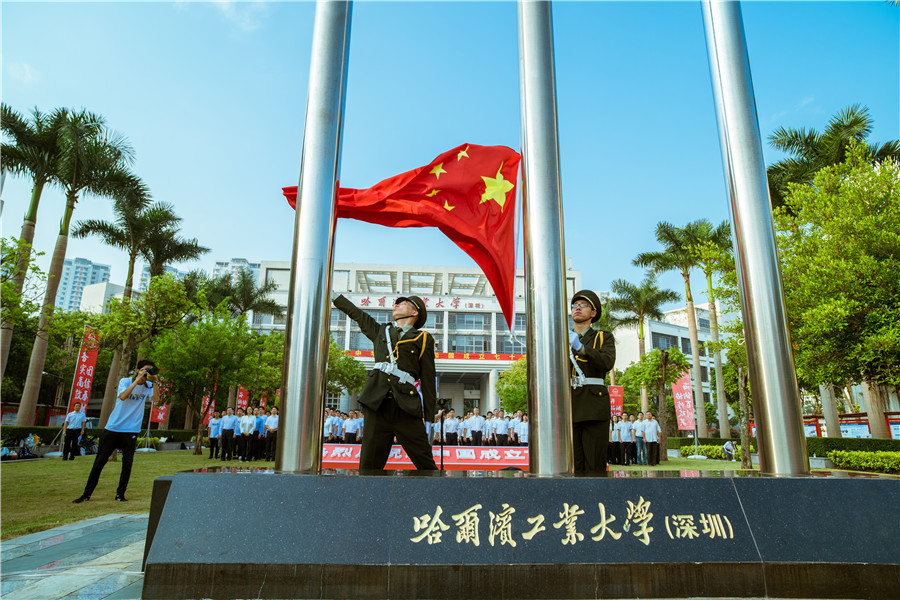 10月1日,中华人民共和国成立70周年。清晨,哈工大(深圳)千名师生齐聚HIT广场,整齐列队,举行庄严的升旗仪式,表达全体师生对伟大祖国的美好祝愿。哈工大(深圳)党委书记吴德林,常务副校长甄良,副校长姚英学,校长助理韩喜双、马广富、梁大鹏,学校相关事务负责人张敏等参加活动。