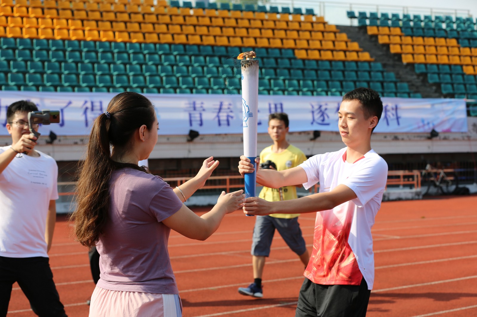 精彩的师生文艺汇演结束后,由各学院优秀师生代表担任火炬手,绕场一周接力跑步完成火炬传递。