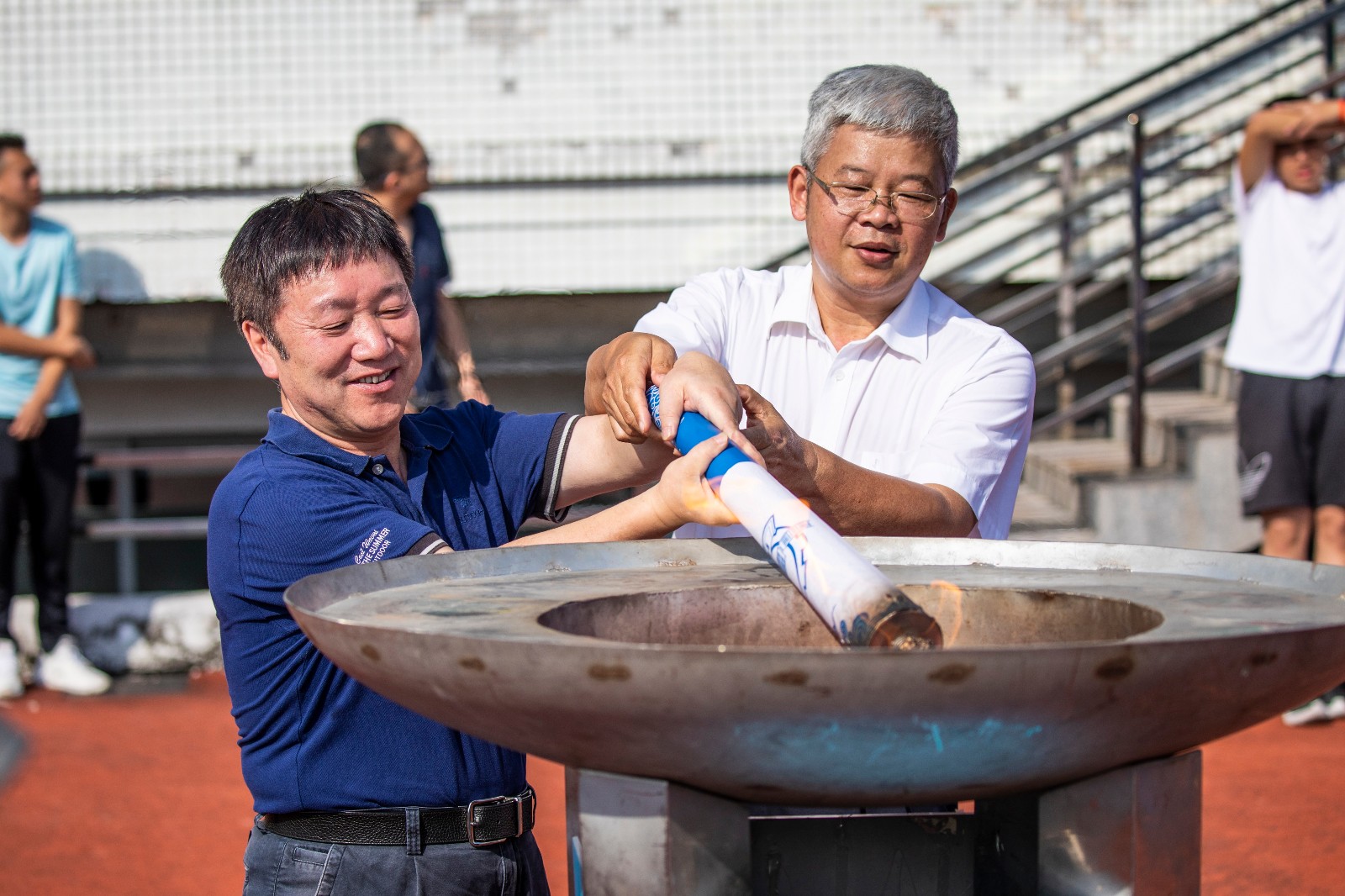 深圳大学城管理办公室主任刘颖和哈工大(深圳)副校长姚英学校长共同点燃本届运动会圣火