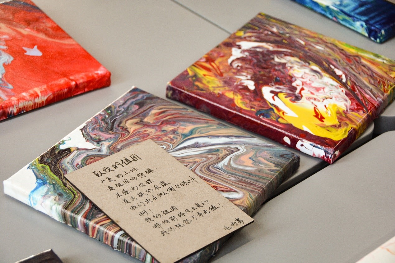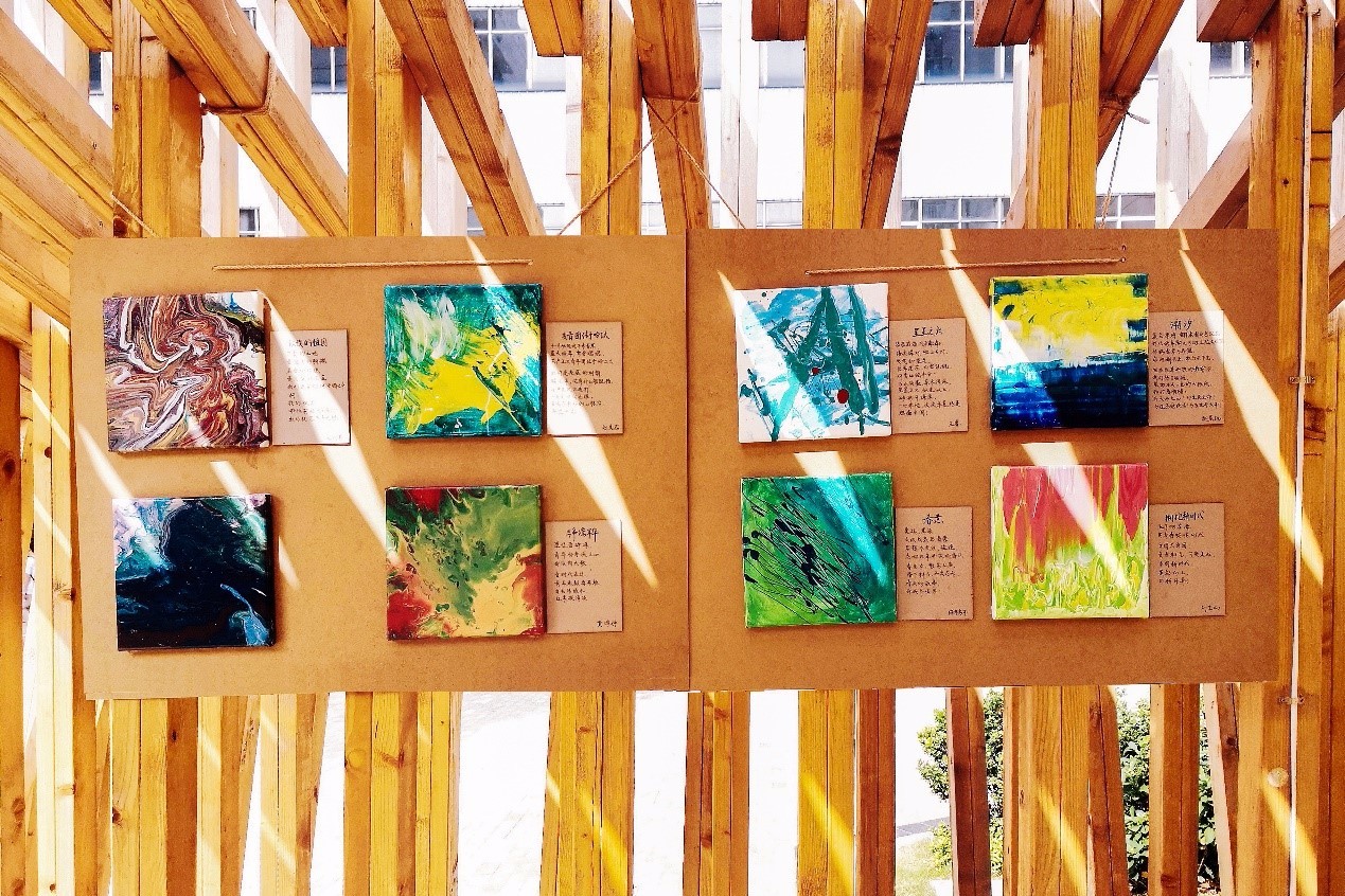 在这场别开生面的团日活动中,团员们发挥专业特长,运用专业课程中所学的色彩对比与色彩混合理论,为两座凉亭“量身定做”了一幅幅美丽的画作,用精美的短诗对作品意象进行文字表达,并将创作成果在校园凉亭内布置成展,成为了校园中一道亮丽的风景线,既美化了校园环境,提升了校园公共空间活力,也展现了哈工大(深圳)青年团员昂扬向上、积极进取的精神风貌。