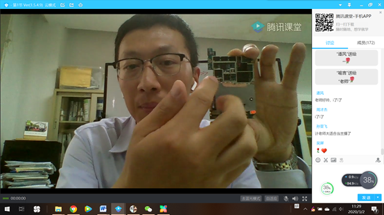 面对网络教学,教学经验丰富的老师们也变成了“新学徒”。理学院的游宏老师是国家级教学名师,为了在线讲好《高等代数与几何B》这门课,他特地购买了耳机和摄像头。从刚开始的不熟练,到现在的游刃有余,这位年过七旬的主播已经顺利“出师”。“老师辛苦了!”课程结束后,同学们通过弹幕“刷屏”表达对老师的尊敬之情。