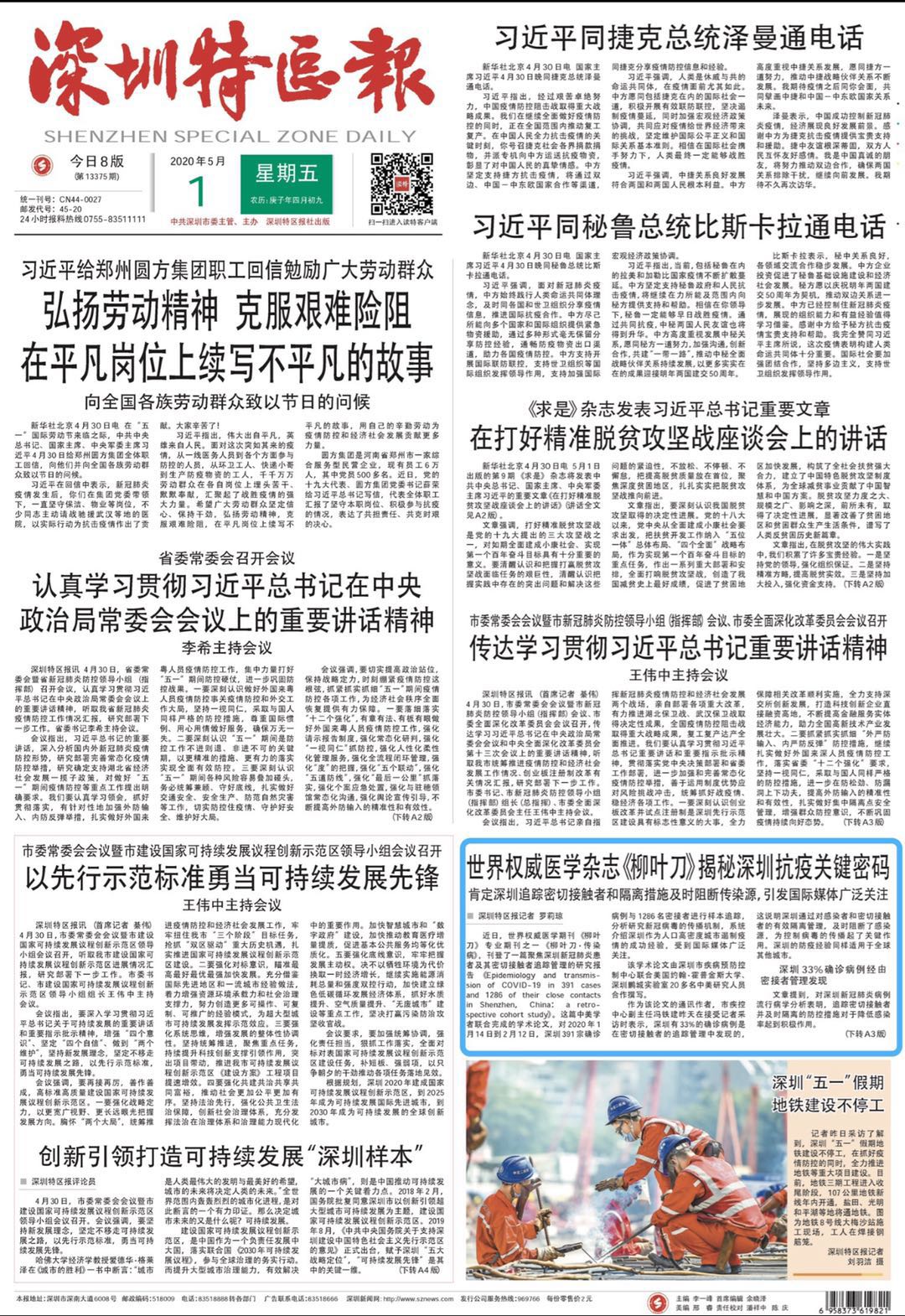 近日,世界权威医学期刊《柳叶刀》专业期刊之一《柳叶刀·传染病》,刊登了一篇聚焦深圳新冠肺炎患者及其密切接触者追踪管理的研究报告《Epidemiology and transmission of COVID-19 in 391 cases and 1286 of their close contacts in Shenzhen, China: a retrospective cohort study》。这篇中美学者联合完成的学术论文,对2020年1月14日到2月12日,深圳391宗确诊病例与1286名密接者进行样本追踪,分析研究新冠病毒的传播机制,系统介绍深圳作为人口高密度城市遏制疫情的成功经验,受到国际媒体广泛关注。