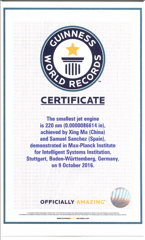 马星教授打破“最小纳米火箭”的吉尼斯世界纪录。