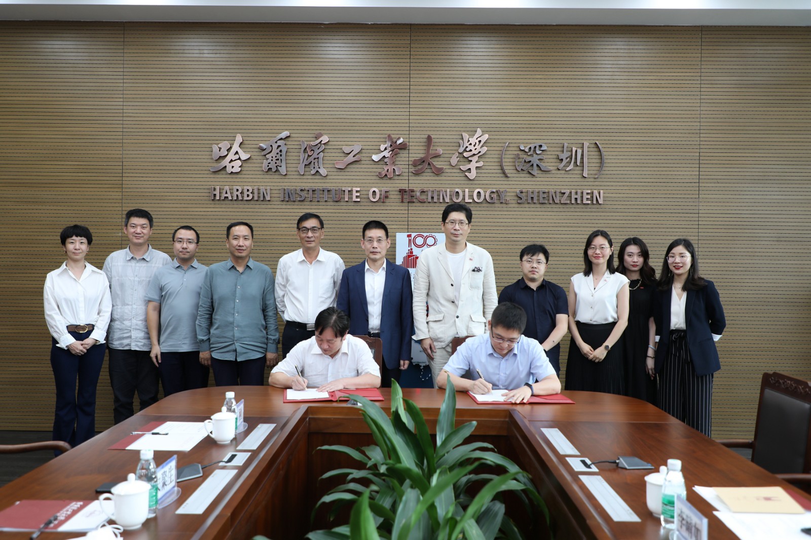 哈工大(深圳)副校长姚英学与深圳市杰恩创意设计股份有限公司副总经理、董事会秘书顾承鸣签订合作协议。