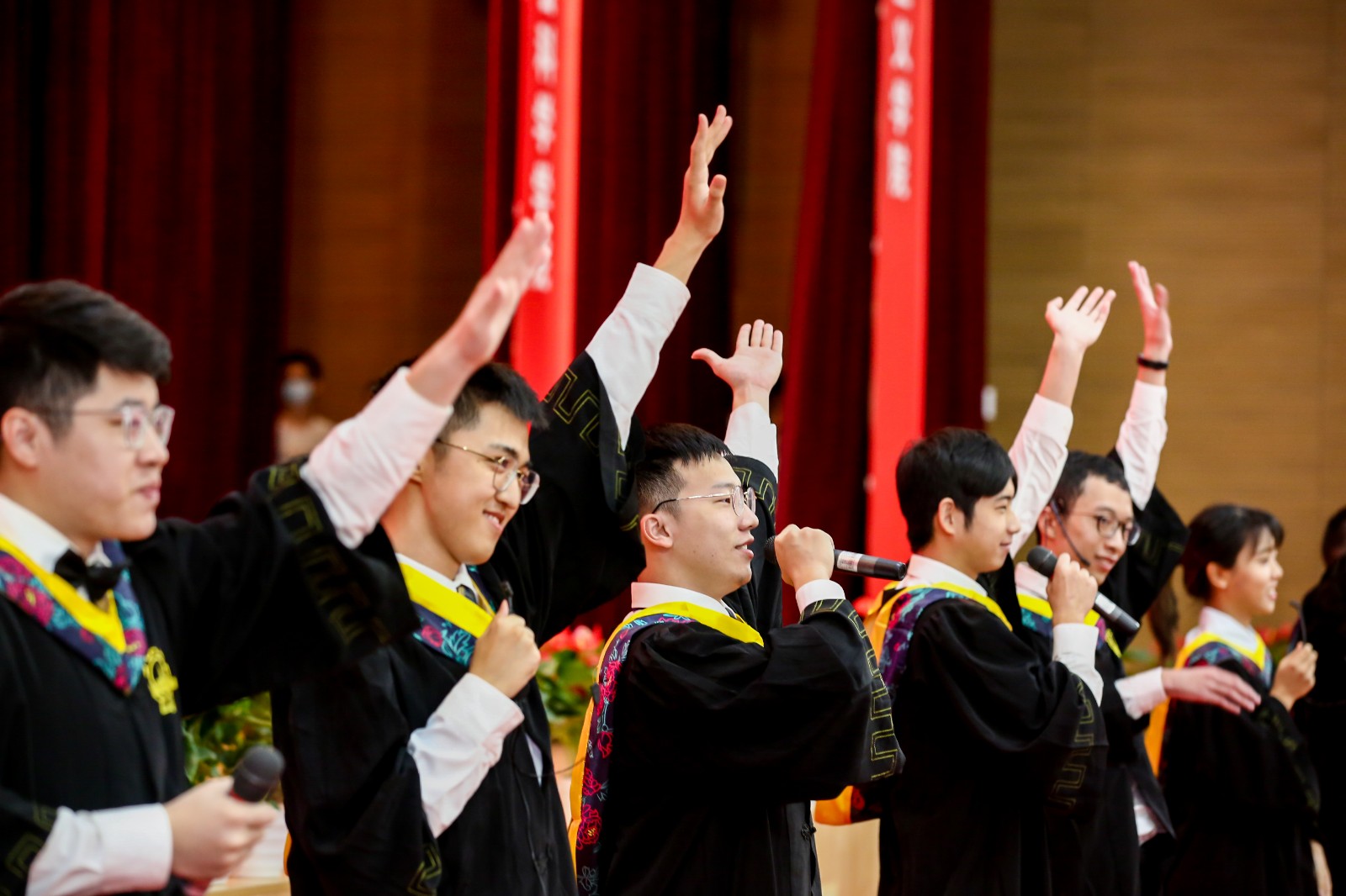 开场时,毕业生别出心裁地演绎了一段热情洋溢的快闪,用歌声致敬青春,燃动毕业时刻。
