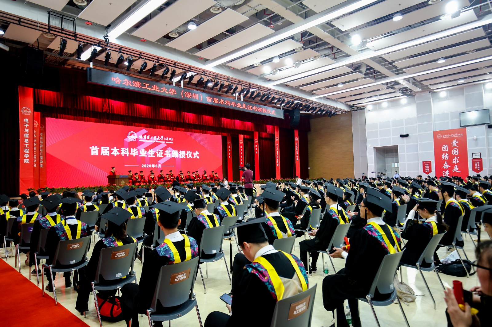 哈工大(深圳)党委书记吴德林,哈工大党委常委、副校长、哈工大(深圳)常务副校长甄良,哈工大(深圳)副校长姚英学,工会工作负责人张敏,校长助理韩喜双、马广富、魏军以及各学院院长、教授代表参加了首届本科毕业生证书颁授仪式。