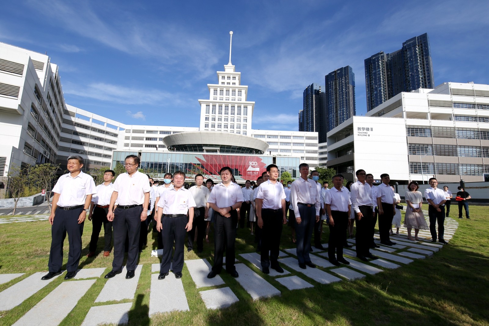 哈工大(深圳)党委书记吴德林与哈工大党委常委、副校长、哈工大(深圳)常务副校长甄良为石碑揭幕