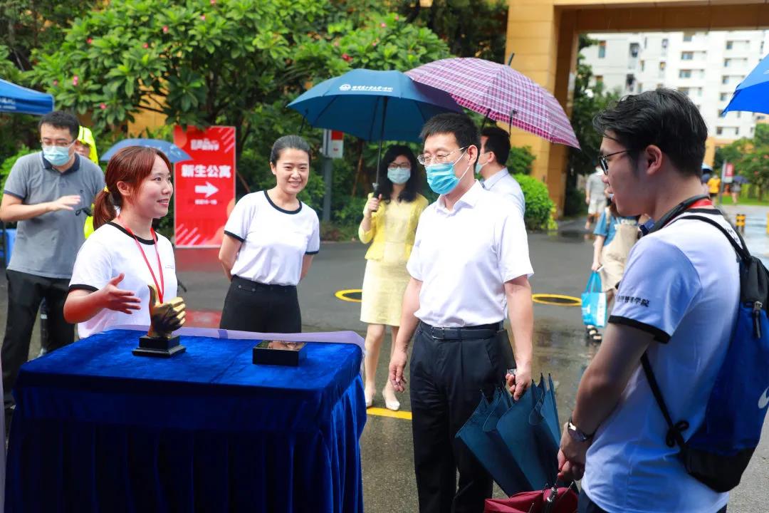 吴德林在迎新现场与新生交谈,并走到校门入口,与新生家长交流。吴德林说,感谢家长将孩子托付给哈工大(深圳),学校定将不负所望,将学生培养好、教育好。哈工大今年迎来了百年校庆,深圳经济特区建立40周年,市校合作办学迈入第18个年头,第一届本科生交出了亮眼的“毕业答卷”。站在哈工大新百年的起点上,哈工大(深圳)会加倍努力,关怀学生,让学生学有所成、学有所获、学以致用。