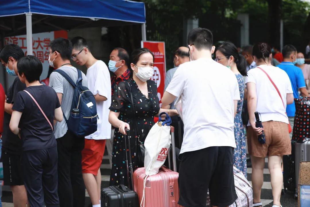 新生进入校园被学校“接管”后,学校门口留下了一群翘首以盼的新生家长。家长们有的意气风发,有的来回踱步,有的红了眼眶。