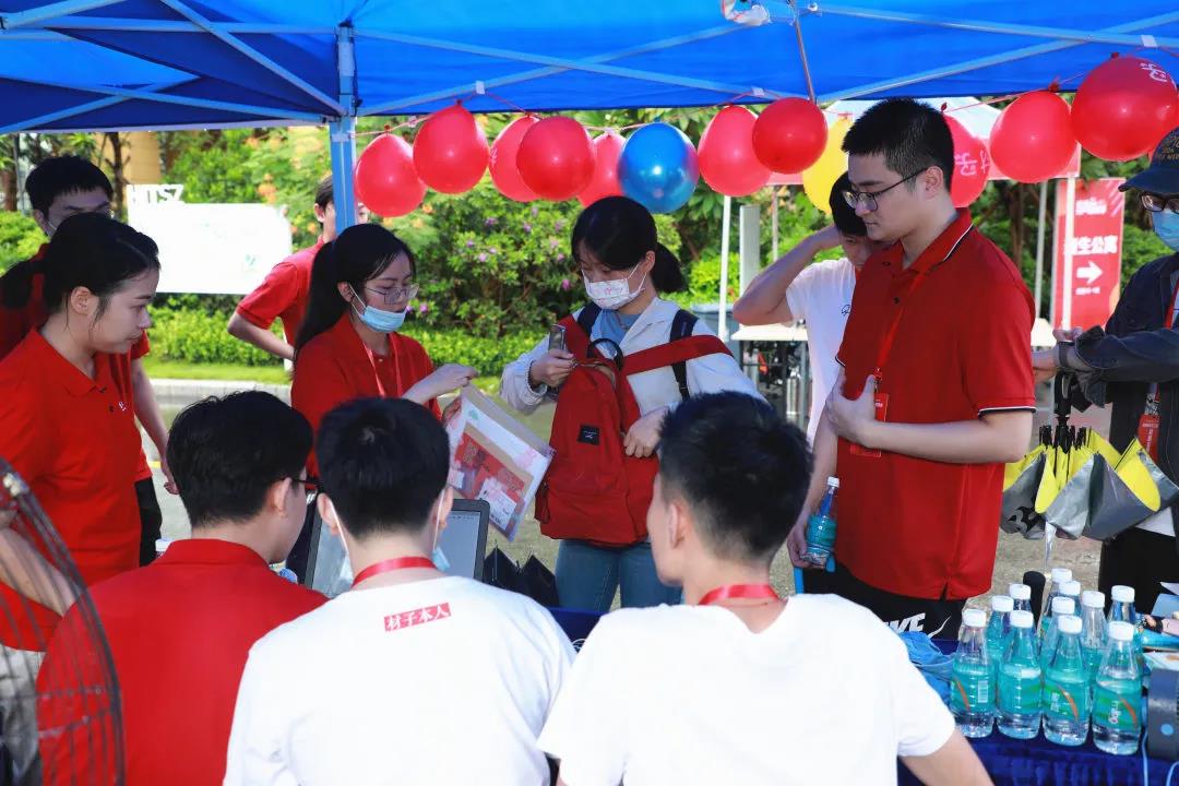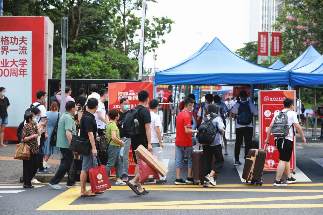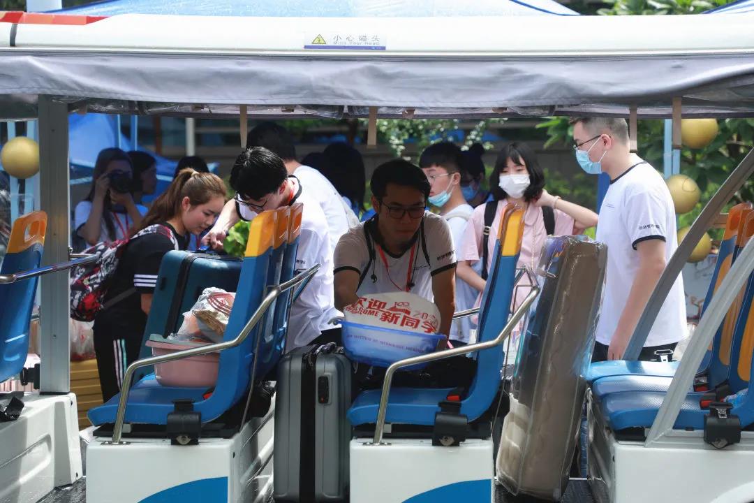 雨过天晴,万物可爱。郁郁葱葱的校园被夜雨清洗一新,南国温润的空气向新生敞开温暖的怀抱。摆渡车一刻不停地穿梭在校园,志愿者们热情迎接一张张满怀无限憧憬的新面孔。