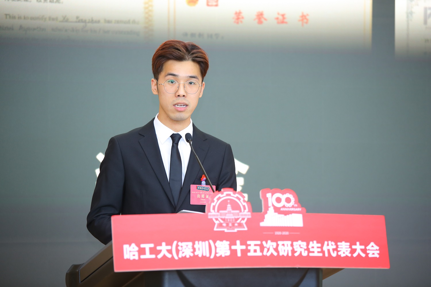 吴德林代表哈工大(深圳)党委向大会的召开表示热烈祝贺。他肯定了第三次学生代表大会、第十四次研究生代表大会召开以来各级学生会组织的工作,希望各级学生会组织时刻牢记习近平总书记殷殷嘱托,练就过硬本领,投身强国伟业,切实担当起党和人民赋予的历史重任,通过充分发挥组织育人、实践育人、文化育人和校园治理等方面的优势作用,努力把学生会建设成为团结带领广大同学走在时代前列的先进组织,不断改革创新、奋发作为、追求卓越,努力把学生会建设成为党组织可以信赖依靠的得力助手和强大后备军,为哈工大“双一流”建设、深圳“双区建设”和实现中华民族伟大复兴的中国梦作出更大贡献。