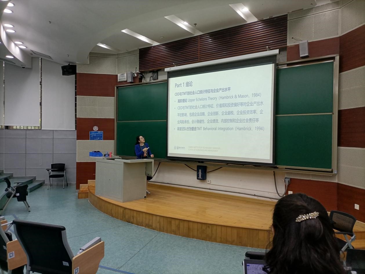2020年12月10日,会计与财务学术论坛第27期在大学城哈工大深圳校区A栋104举行,经管学院王世璇老师作“首席执行官与高层管理团队其他成员异质性对企业绩效的影响研究”讲座,经管学院许博老师主持,经管学院辛乾老师点评,学院师生参与研讨。以下是讲座主要内容: