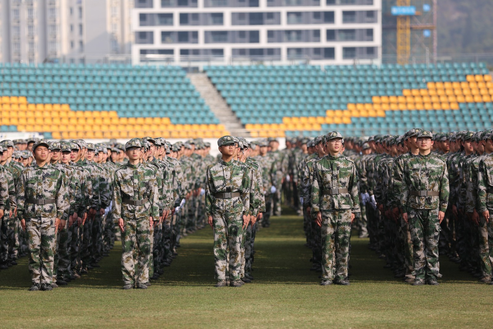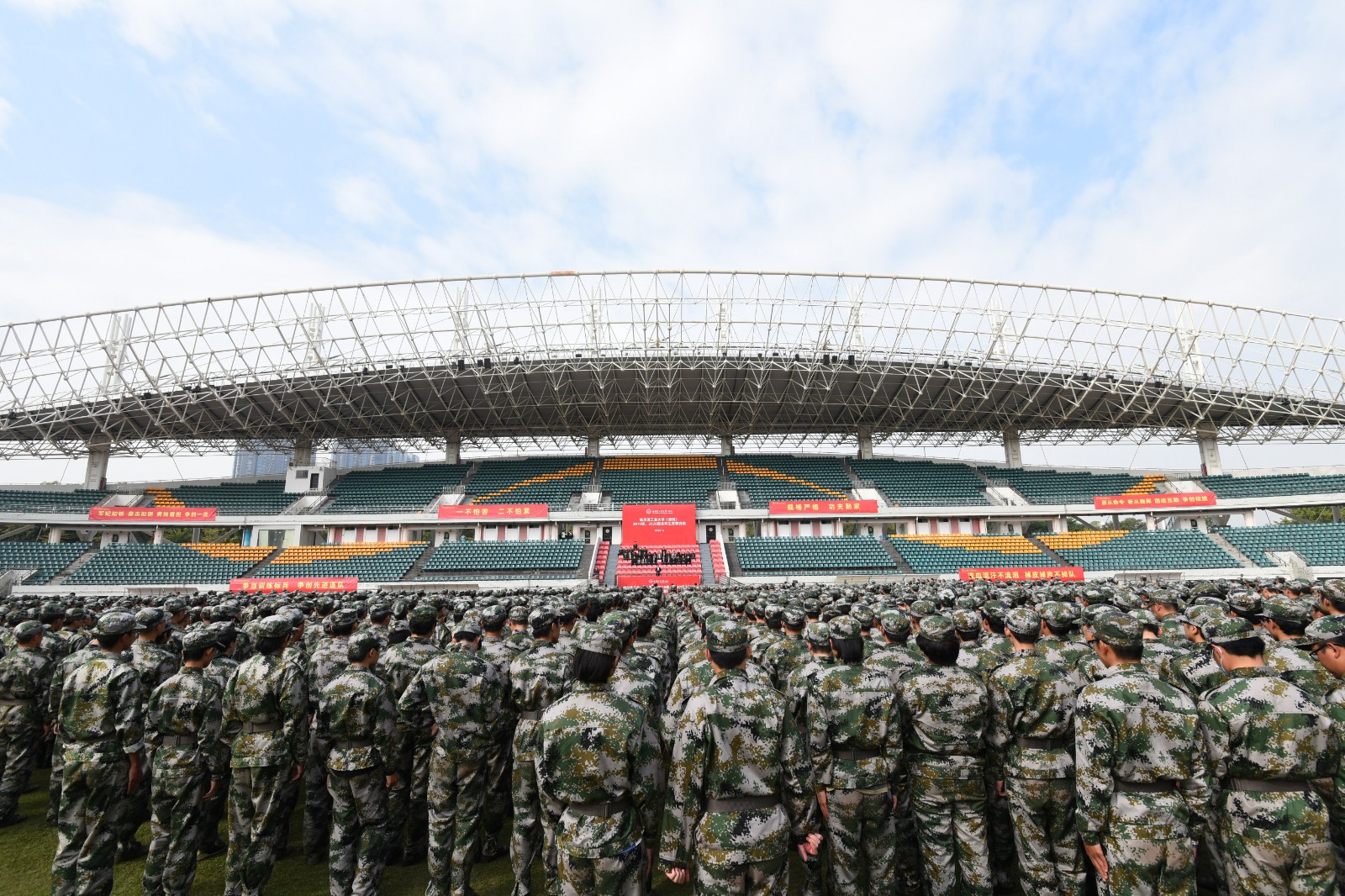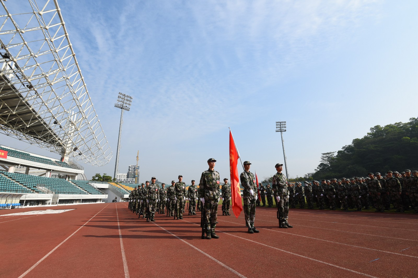 1月10日,哈工大(深圳)2019 级、2020 级本科生军训开营仪式暨动员大会在深圳大学城体育场举行。