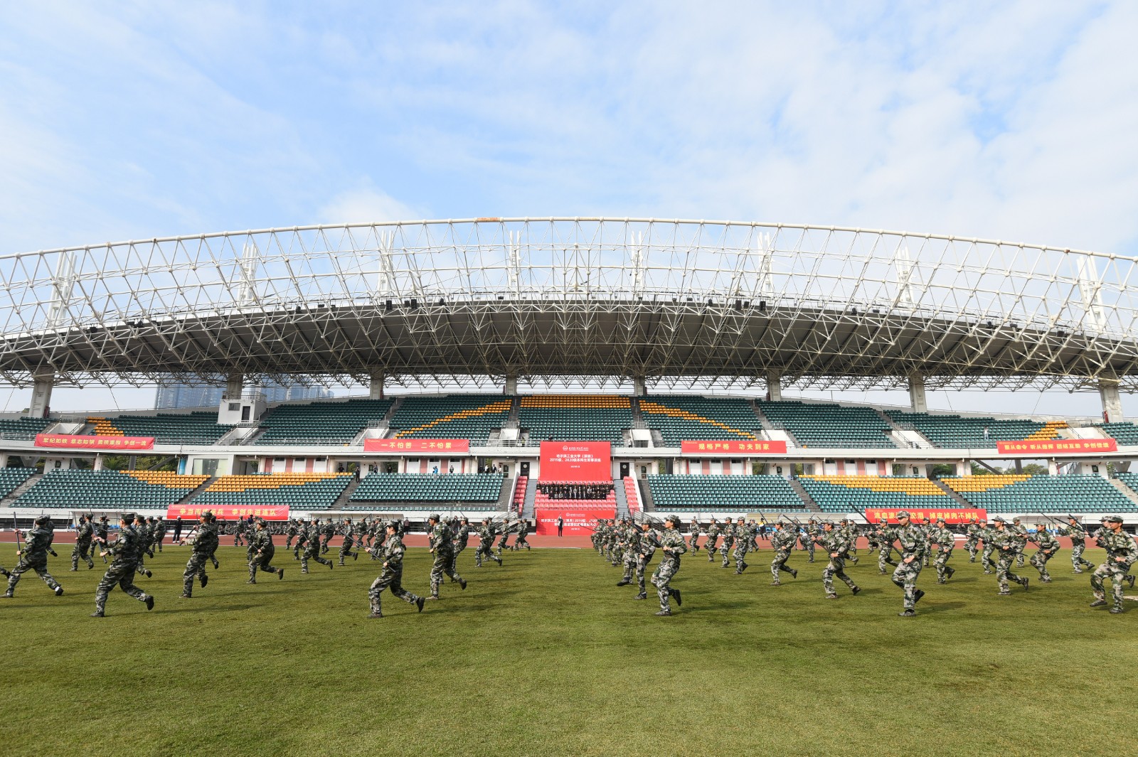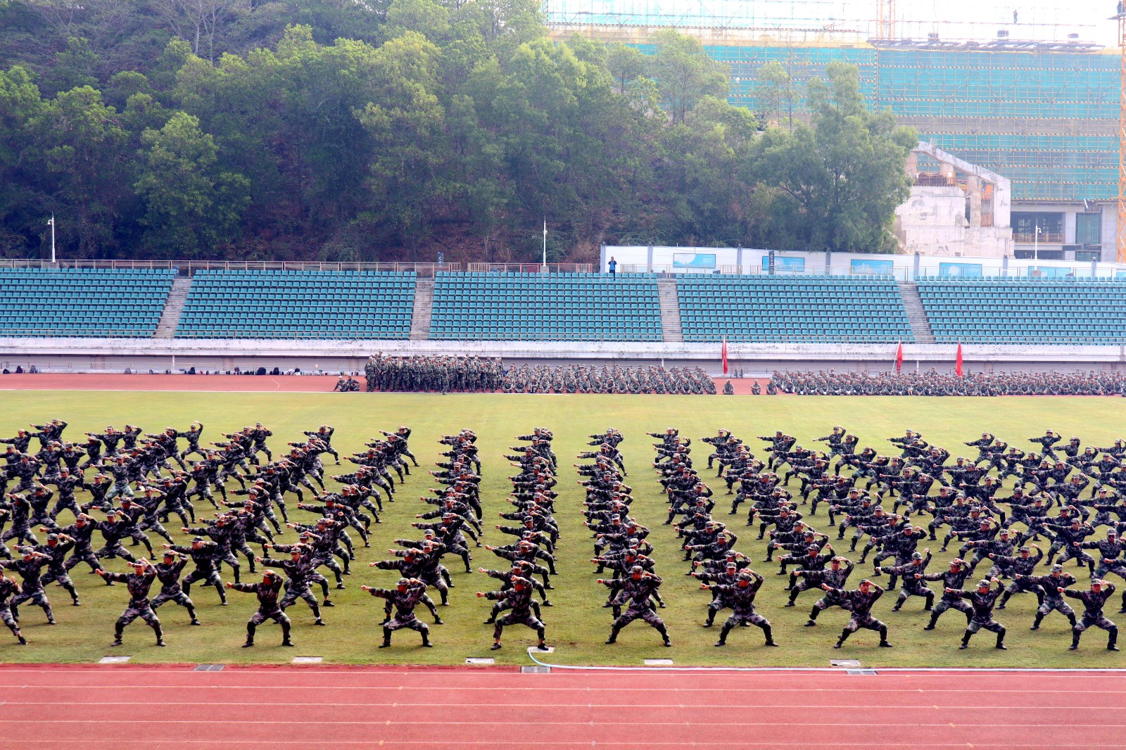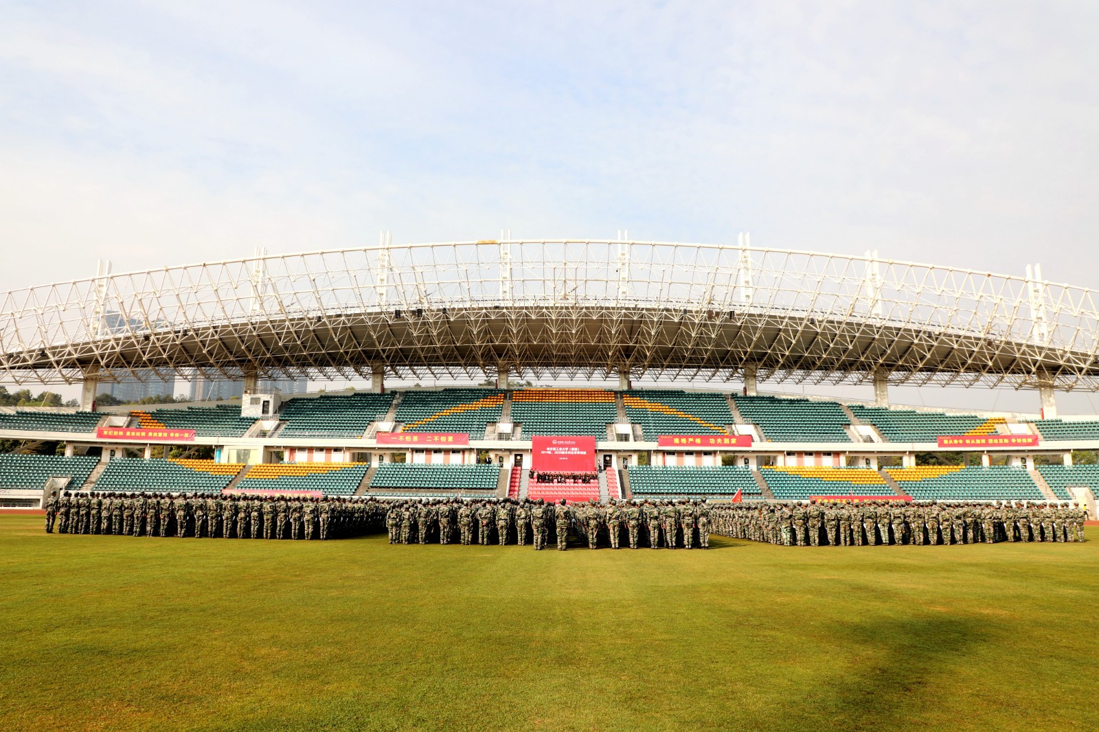 1月10日,哈工大(深圳)2019 级、2020 级本科生军训开营仪式暨动员大会在深圳大学城体育场举行。