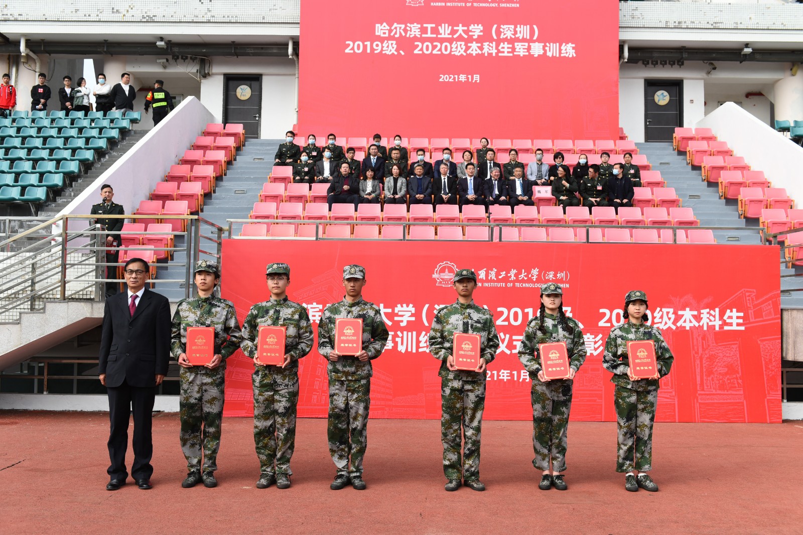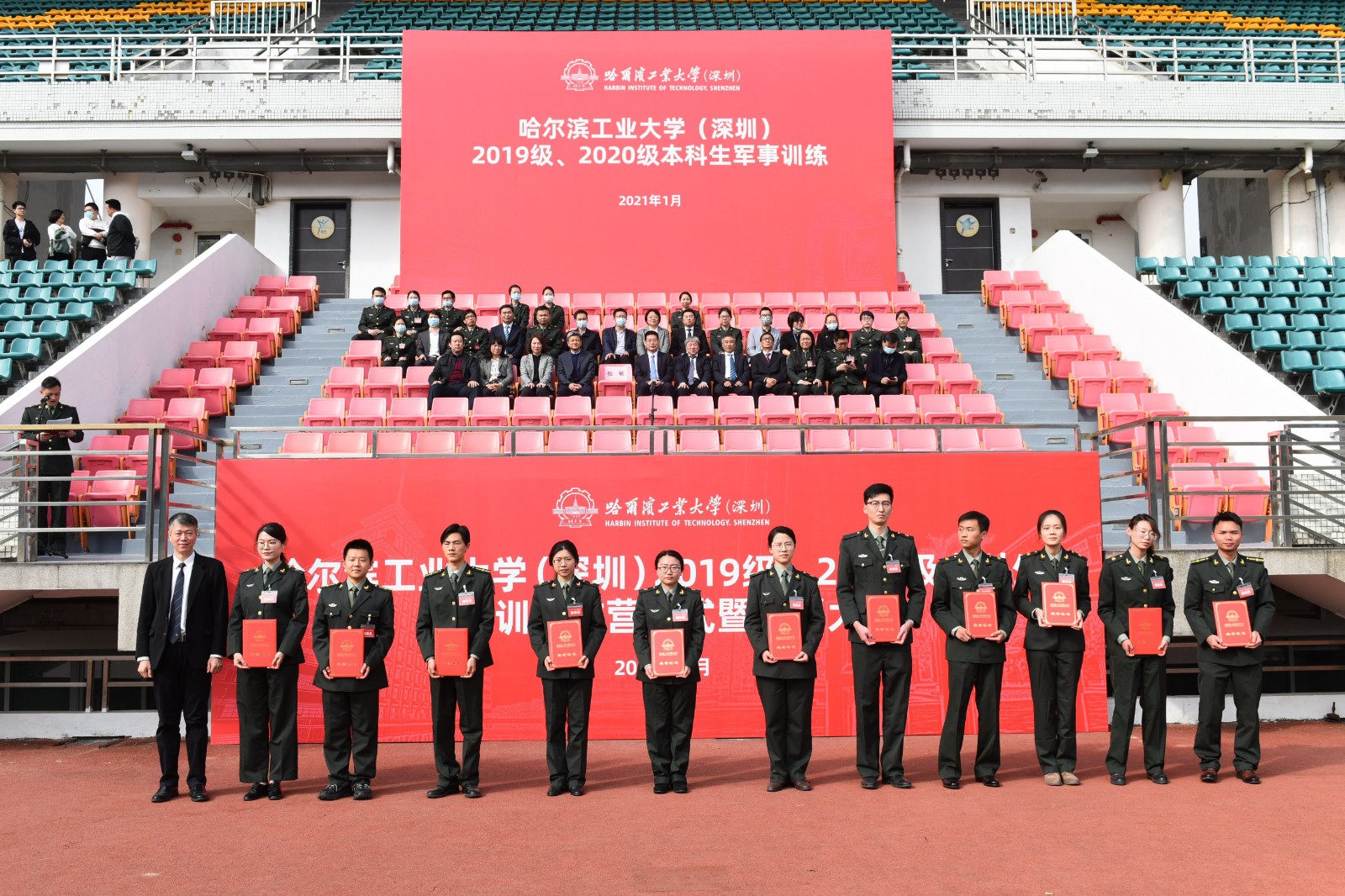 【哈工大(深圳)宣】(向碧霞 金淑芳/文 谢翊鑫 金朝喆 丁一平 杨智杰 李委 刘博/图)“严格训练,严格要求,不忘初心,牢记使命……”1月22日上午,嘹亮的口号响彻深圳大学城体育场,在哈工大(深圳)2019 级、2020 级本科生军训结营仪式暨表彰大会上,2378名学子通过精彩的军事技能会操展演向学校汇报为期两周的正规军事技能培训和国防知识教育成果,充分展现出新一代哈工大人气宇轩昂、意气风发的良好精神面貌。